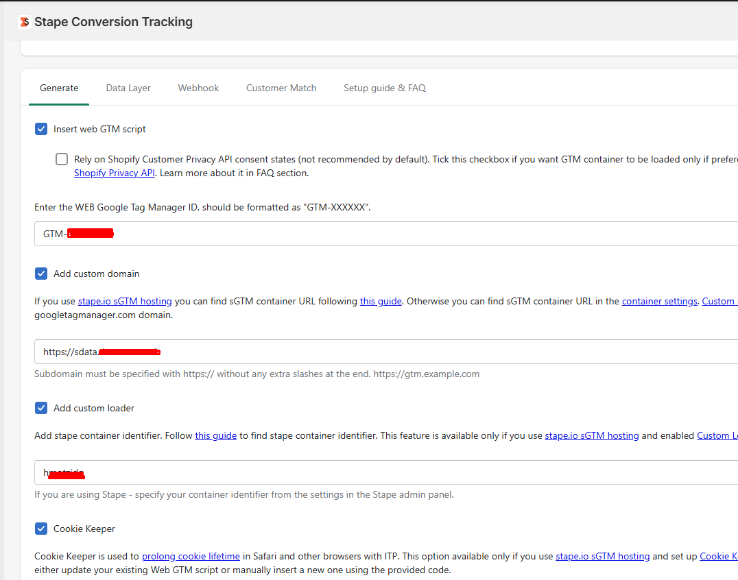 I used the Stape Setup Assistant to configure Google Ads server-side tracking for https://thermos.co.uk/. I’m also using the Stape Shopify app to implement the custom loader and enable the ecommerce dataLayer. Also, I created a custom pixel using the code provided by the Stape app.