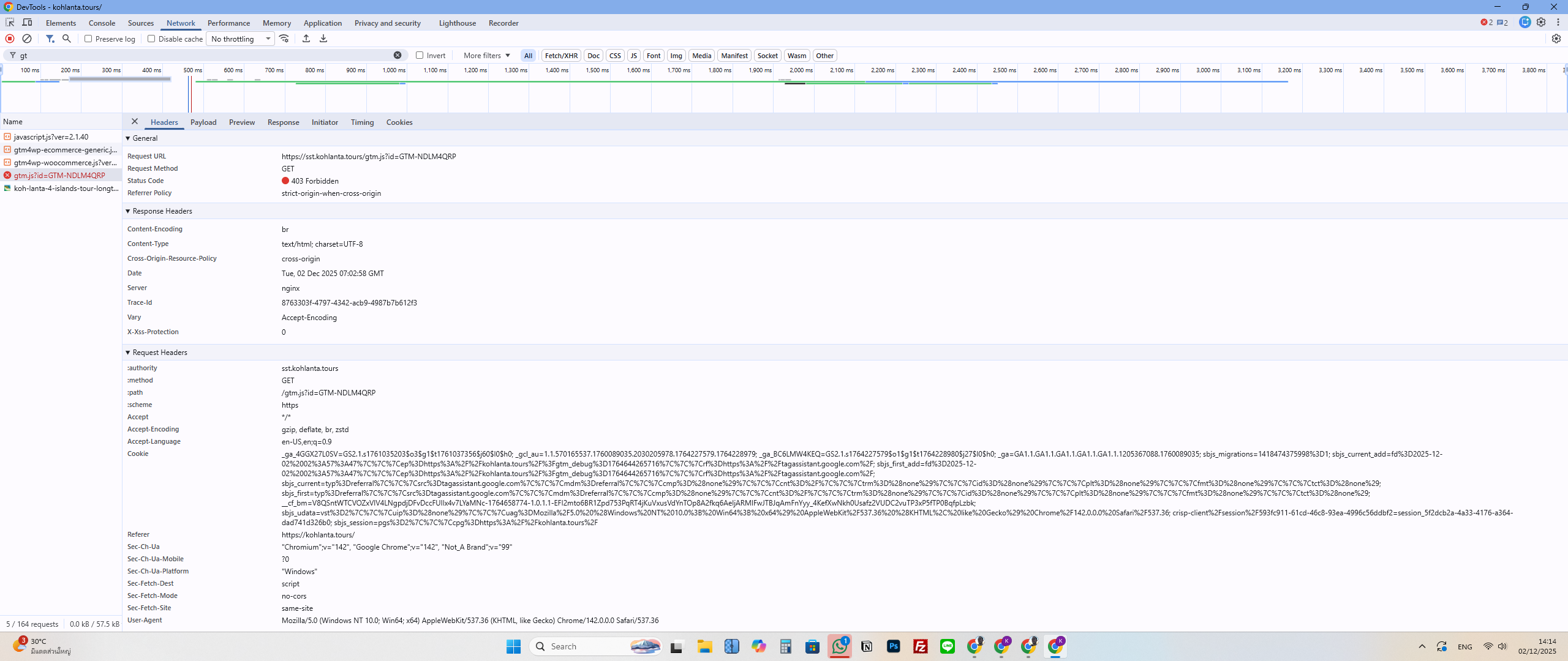 Chrome is blocking loading the GTM js from my subdomain https://sst.kohlanta.tours, apparently due to a cross-origin issue.According to GPT this is because headers are being sent incorrectly. WHat can I do to fix this?