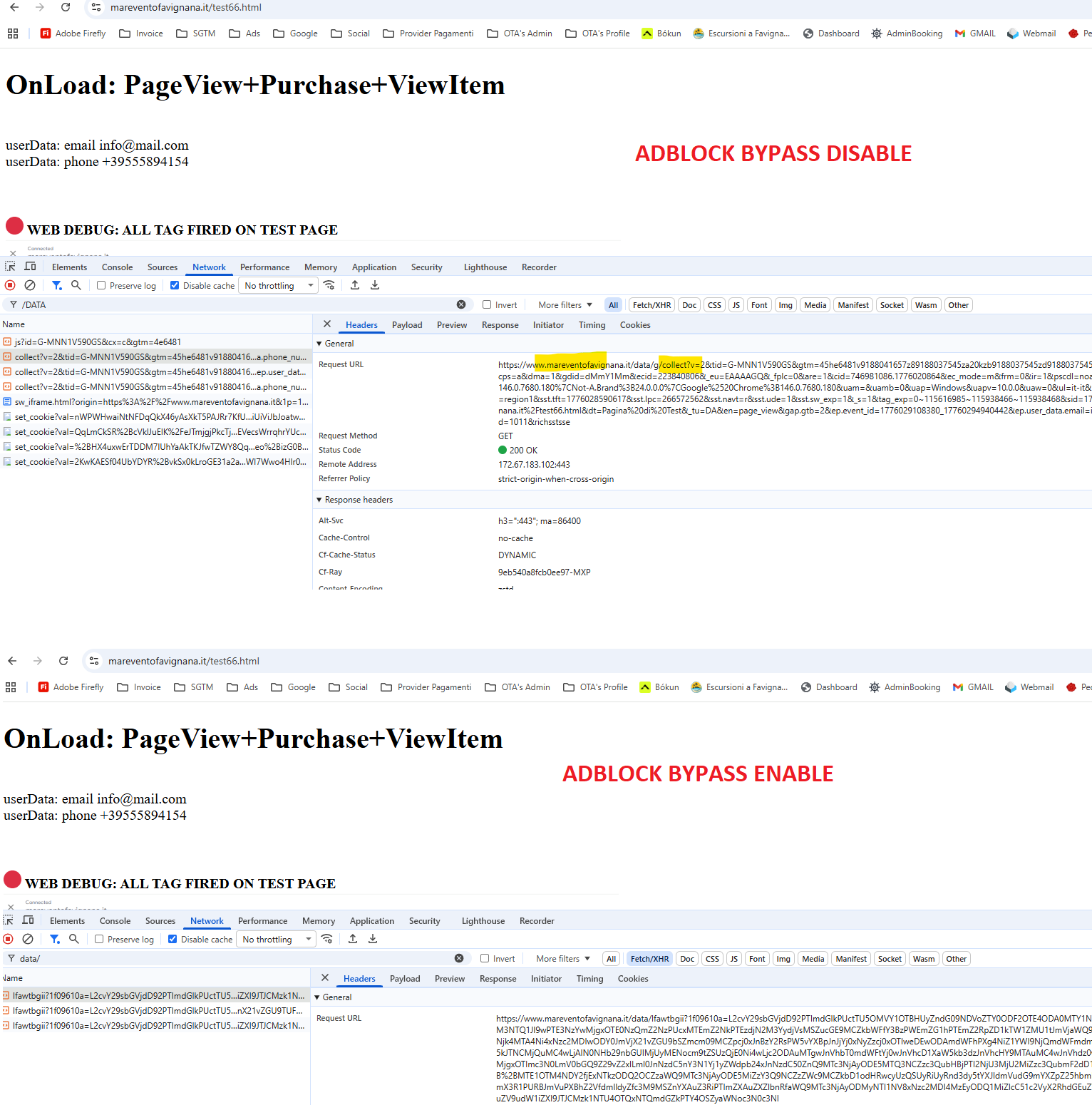 Here is the /collect request encrypted from my server when the adblock bypass option is enable in the Custom Loader. AND the unredacted request from my server when the adblock bypass option is disabled in the Custom Loader.