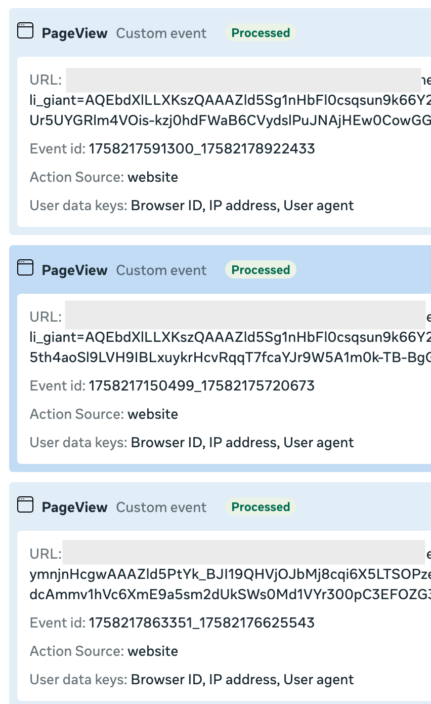 So it seems like it’s working correctly, but while I was testing, it was recording other pageview events by a visitor visiting a specific page over 3-5 times within seconds, each with its own event ID, and none were deduplicated. This feels like a bot visiting and spamming the page with views, so I’m wondering if maybe this is why? My other events lead to low traffic pages so they don’t seem to experience this issue.