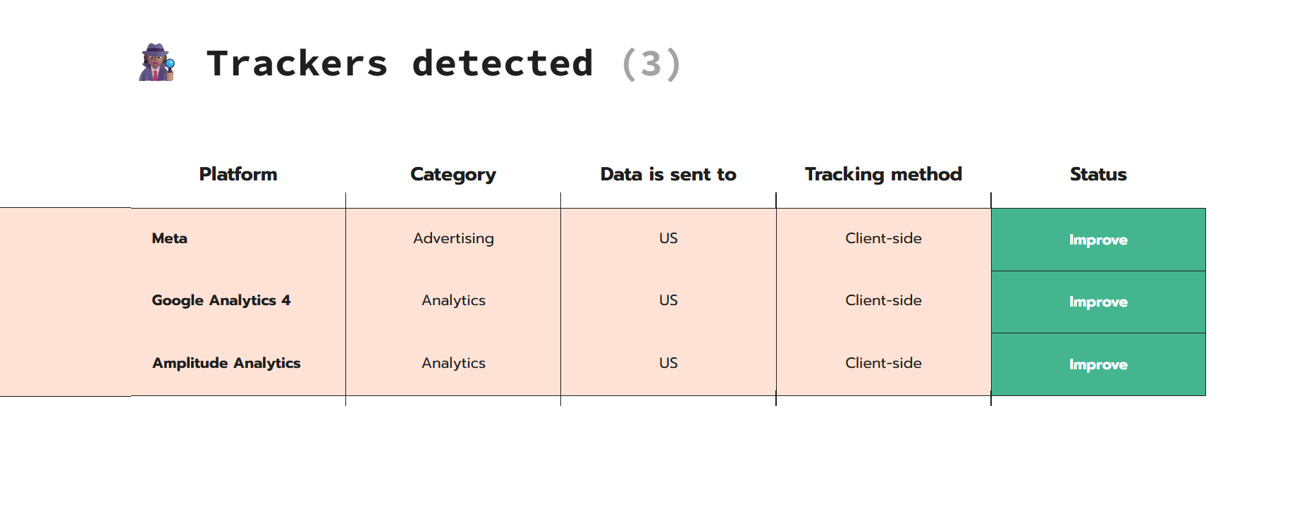 Stape Tracking Checker shows Meta tracking on this site, but there are no active Meta ads (confirmed via Ad Library). The business is only running Google Ads.